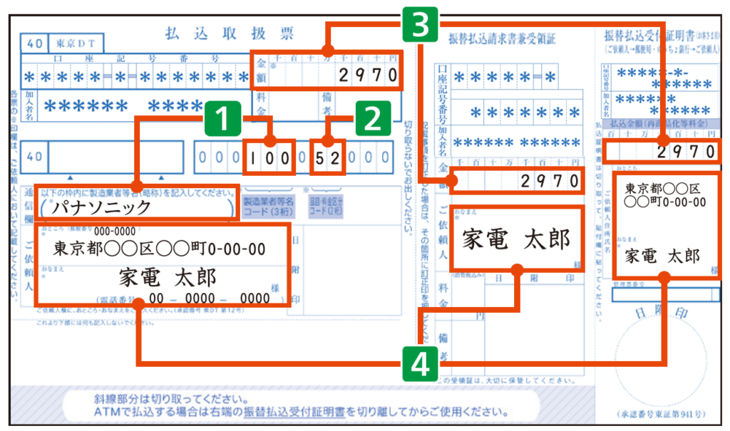 - 記入台にある 「家電リサイクル券」 に必要事項を記入
